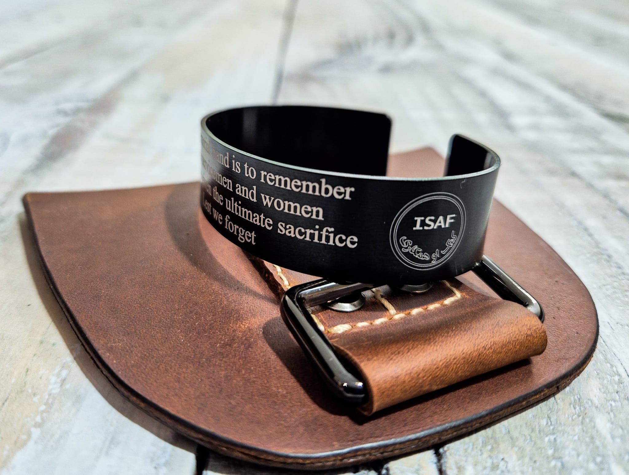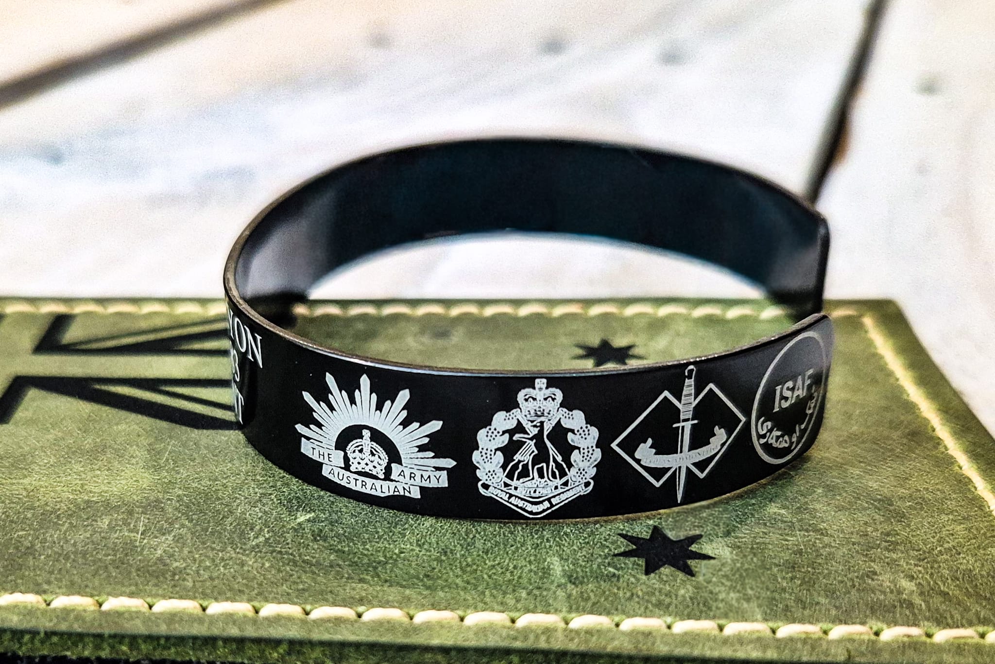 Honour service and sacrifice with our custom metal Memorial Bracelet Bands. Designed for Military, ADF and emergency services — police, firefighters, and paramedics - or for honouring the memory of a loved one— each bracelet is engraved with names, ranks, dates, or units.