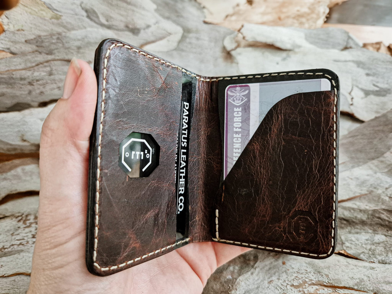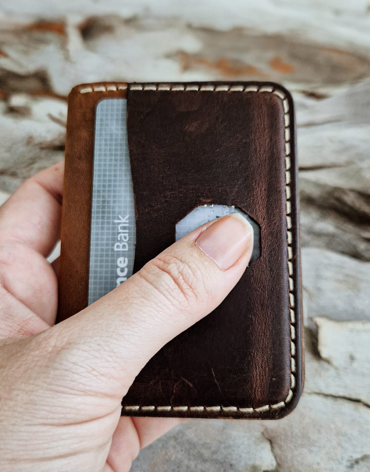 When first received, the card pockets may feel snug. This is intentional: over time, the leather naturally softens and molds to your cards, creating a perfect custom fit. The initial tightness ensures your cards stay secure and your wallet retains its shape for years to come.