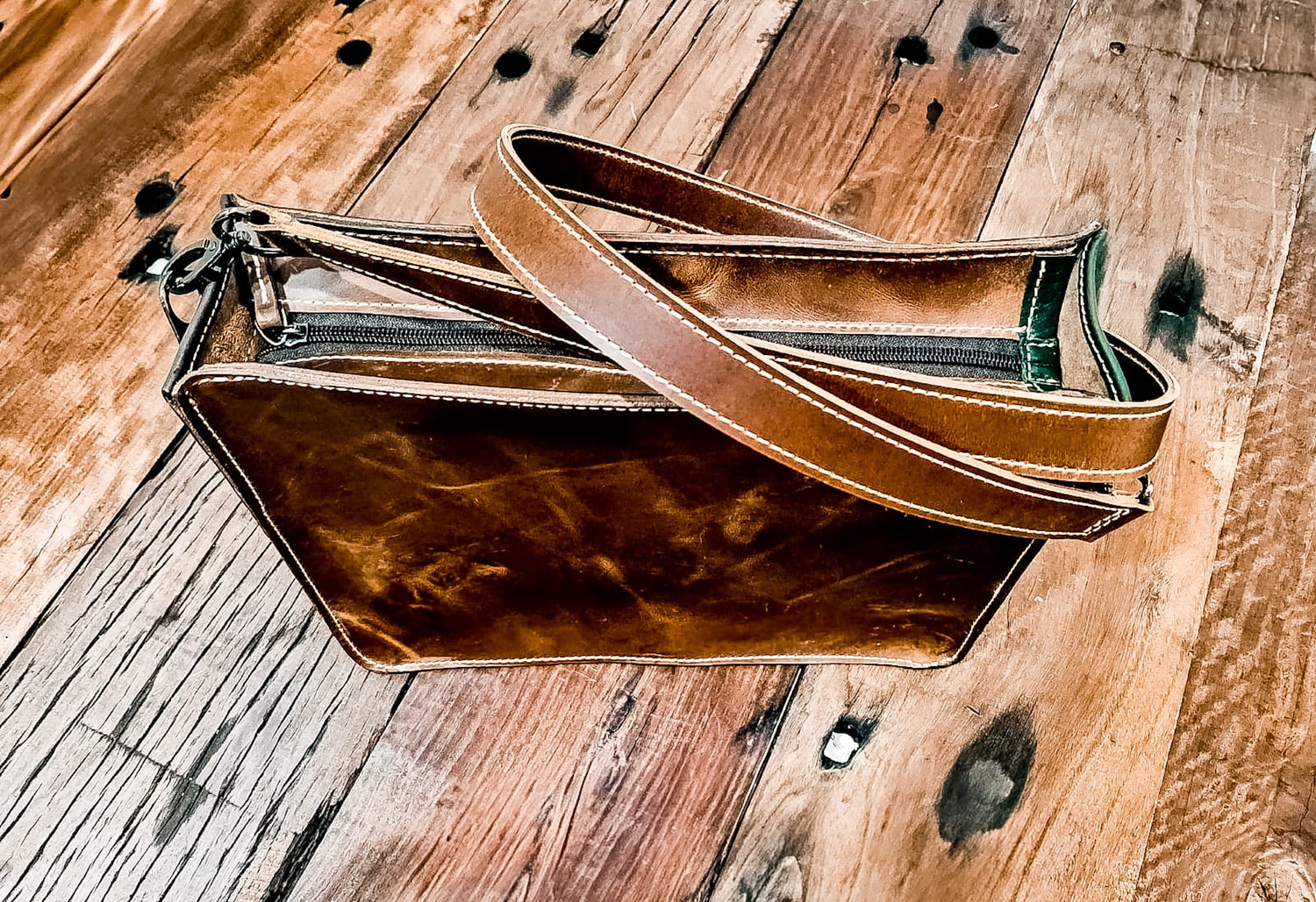 When pulled or stretched, the leather lightens in color in the manipulated areas, creating a unique and aged look. This effect adds depth and character, making each piece more attractive over time. The oils and waxes also contribute to its soft, supple feel while offering water resistance and protection from environmental elements. As it ages, the leather develops a rich patina, making each item truly one-of-a-kind.