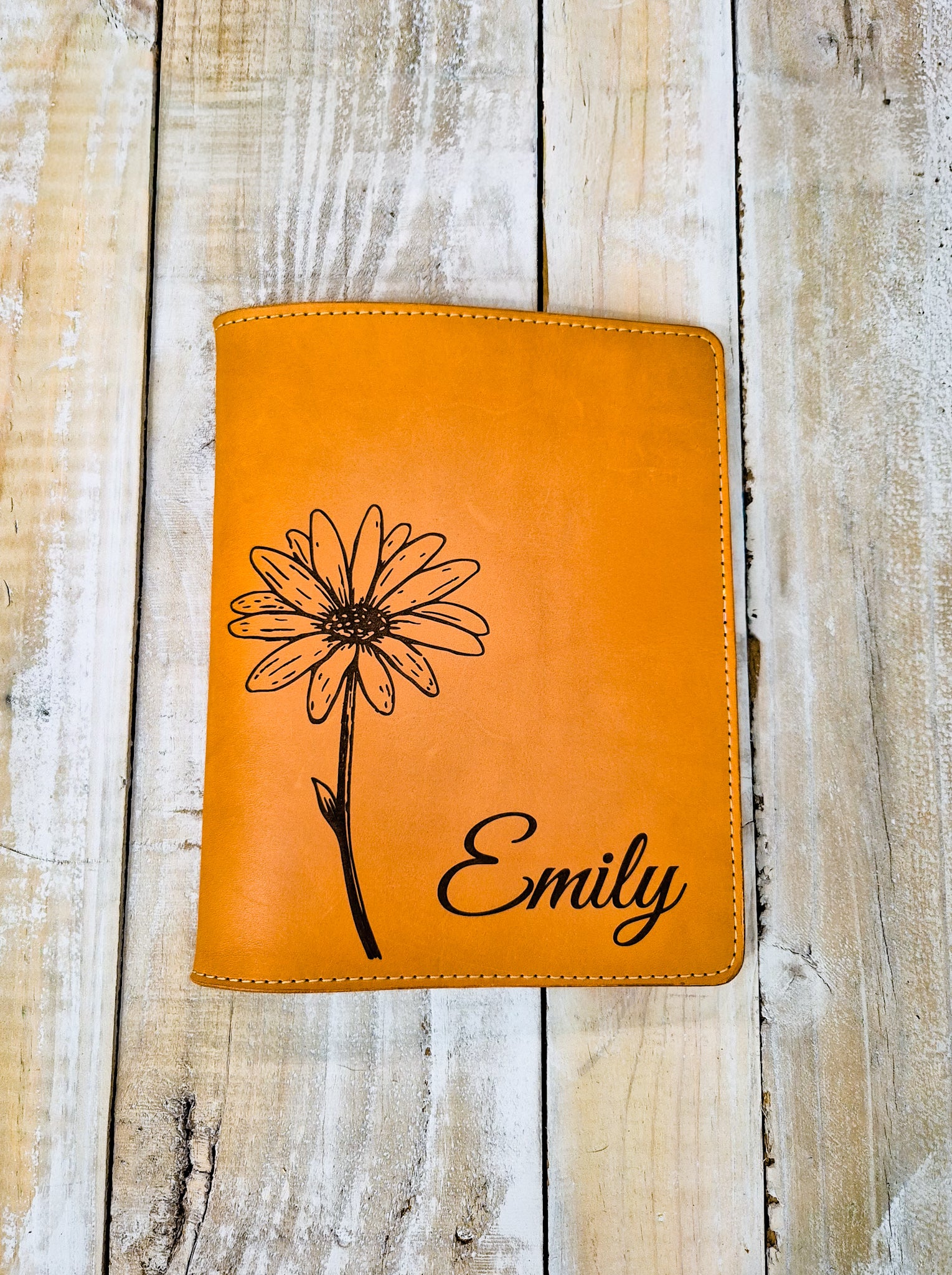 Choose from a wide range of elegant flora designs — from wildflowers to graceful blooms — to complement your leather notebook. Add your name or initials for a personal touch.